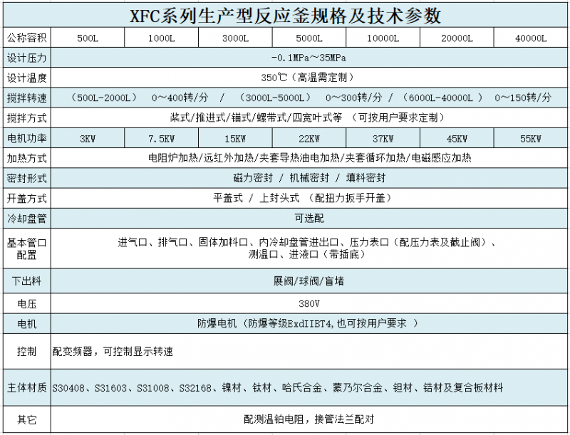 根據(jù)工藝要求:生產(chǎn)容積100L---50000L